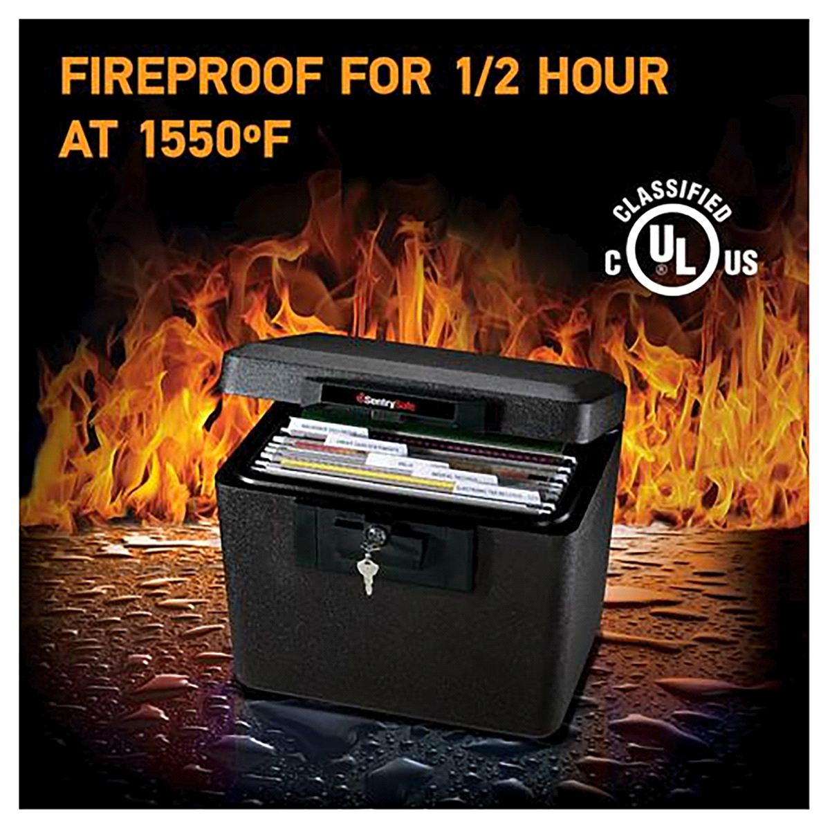 Sentry Fire Key Lock Chest Safe Black Plastic - SentrySafe