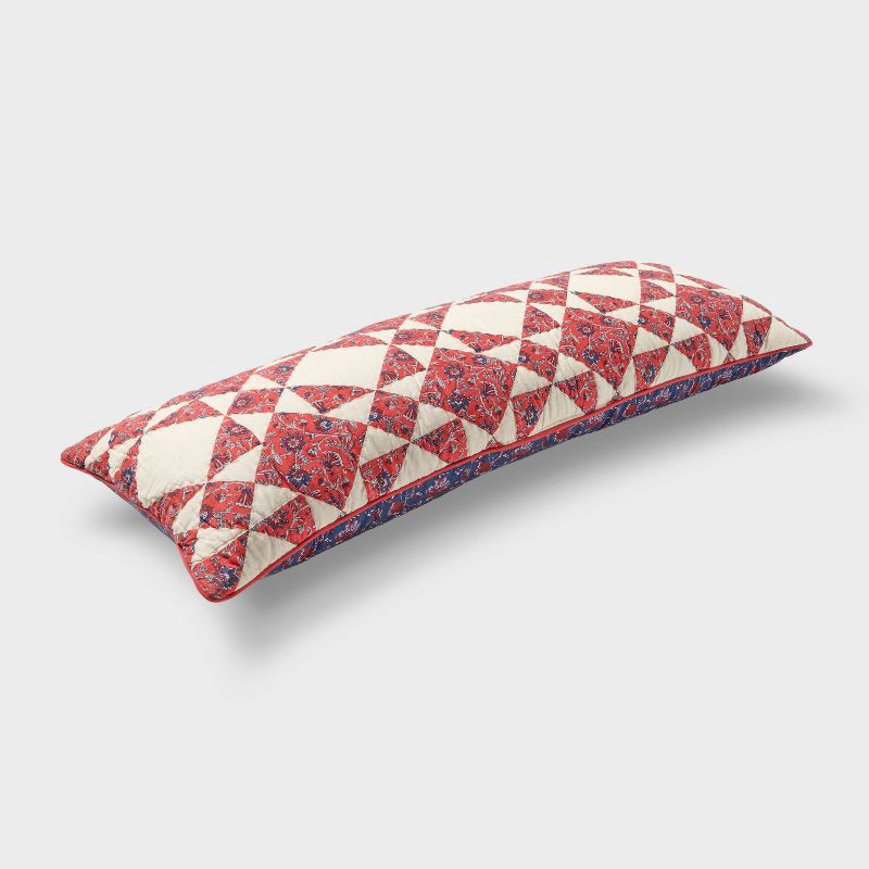 Make your home feel more inviting with this Patchwork Oversized Oblong Decorative Pillow from Threshold™. Made of 100% cotton with polyester filling, this decorative pillow offers ample comfort, and i…