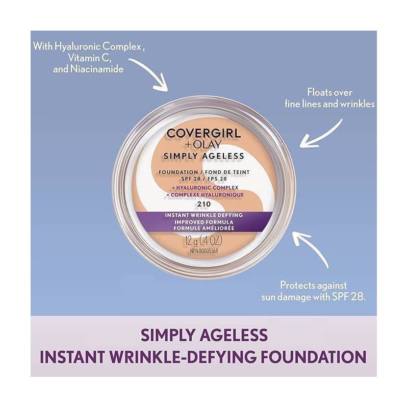COVERGIRL + Olay Simply Ageless Wrinkle Defying Foundation Compact - 210 Classic Ivory - 0.4oz: Medium Coverage, Semi-Matte Finish, Contains Vitamin C