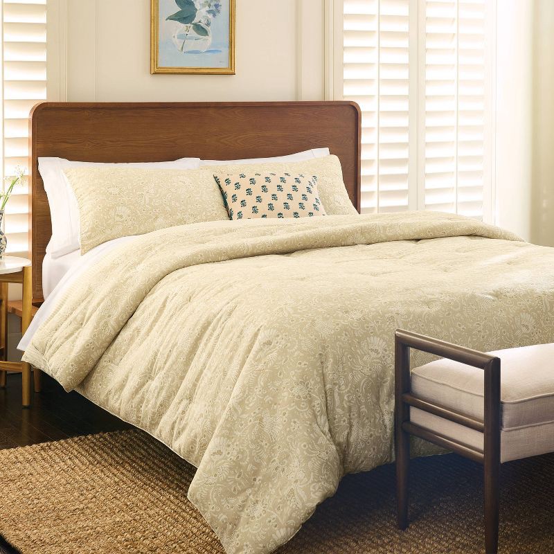 King Floral Paisley Casual Textured Cotton Reversible Comforter and Shams Set Natural - Threshold™