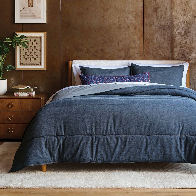 Your bedroom will have modern vibes with the Denim Comforter and Sham Set from Threshold™. Made from crisp, soft 100% cotton twill fabric, this 3-piece bedding set includes a comforter and two standar…