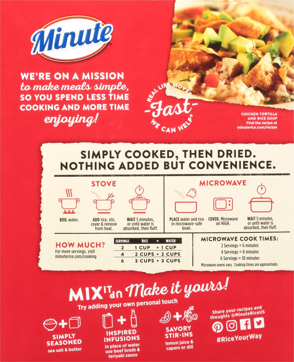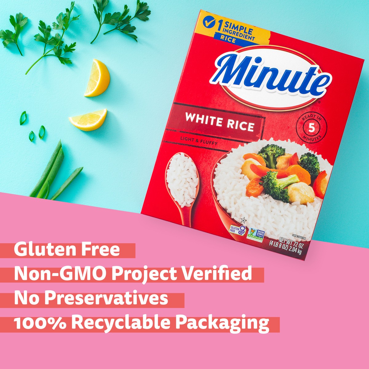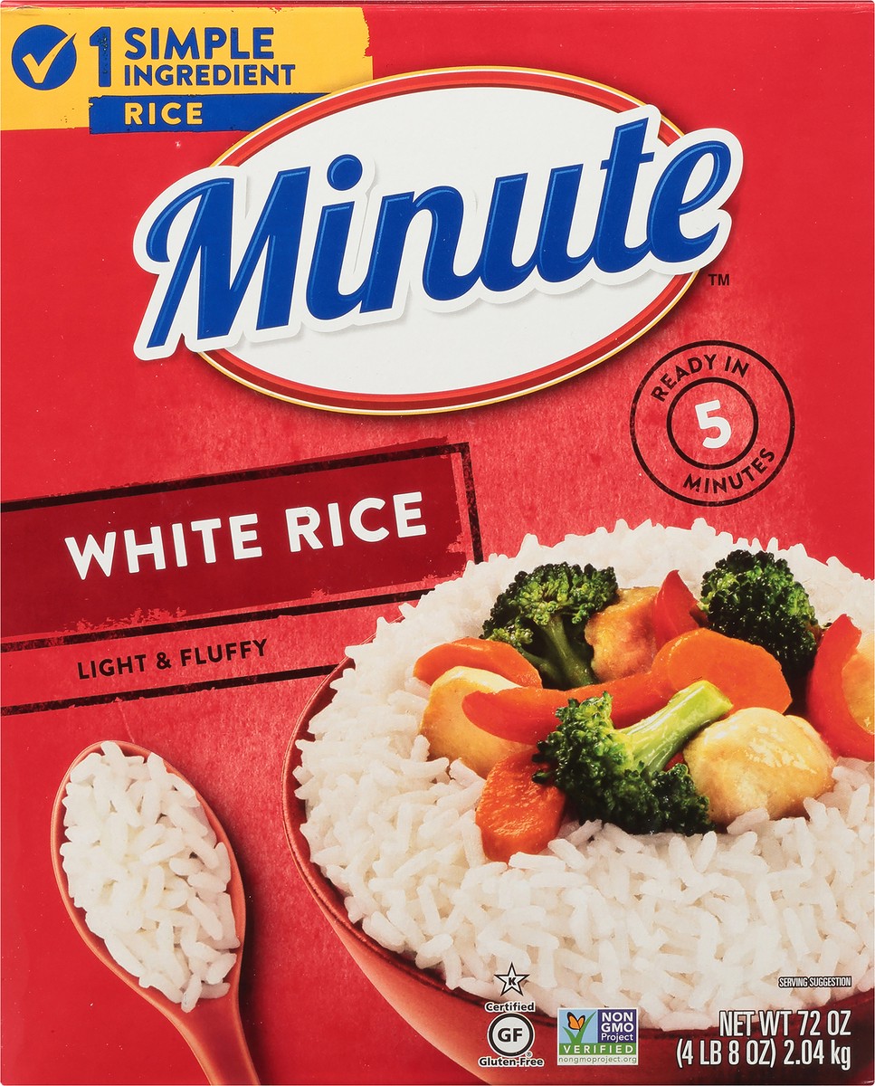 Minute Instant White Rice cooks up in just five minutes for a quick, easy, and delicious addition to any meal from breakfast to dessert. Our white rice is known for its light, fluffy texture and can b…
