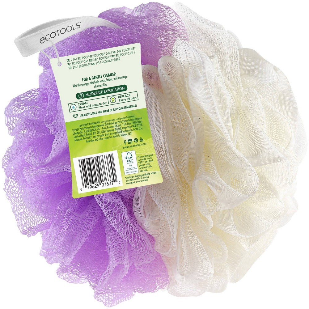 The EcoTools 2-in-1 Bath Pouf is best for lathering and smoothing. The 2-in-1 loofah has one side designed with super soft recycled netting for a gentle, all over clean. Use the other exfoliating pouf…