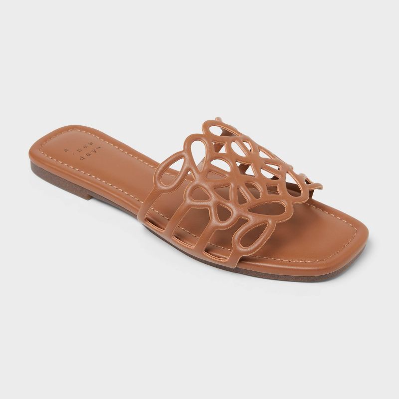 Revamp your accessory collection with these Fiona Slide Sandals from A New Day™. These slide sandals feature a single wide band adorned with a mesh design for a cool look. Plus, these slide sandals bo…