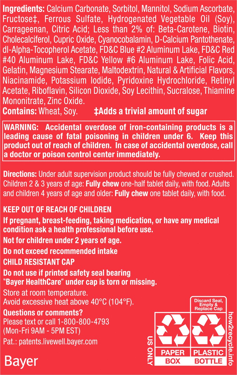Calcium Carbonate, Sorbitol, Mannitol, Sodium Ascorbate, Fructose (Adds a Trivial Amount of Sugar), Ferrous Sulfate, Hydrogenated Vegetable Oil (Soy), Carrageenan, Citric Acid; Less than 2% of: Beta-C…