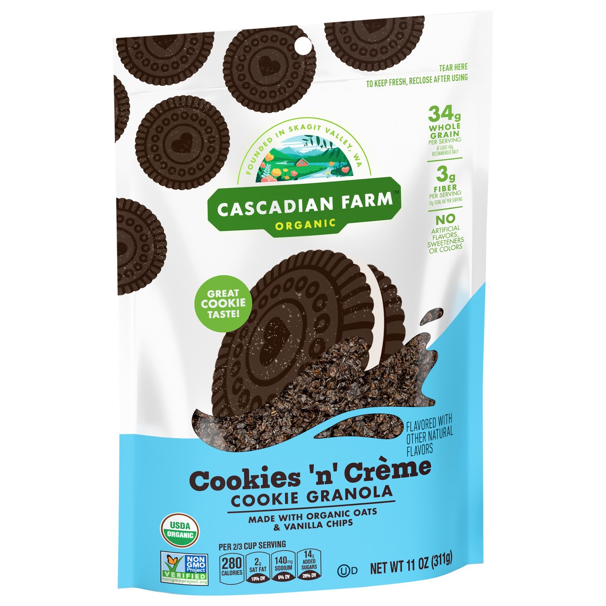 Cascadian Farm Organic Cookies ''n'' Crème Cookie Granola, Whole Grain and Fiber, 11 oz