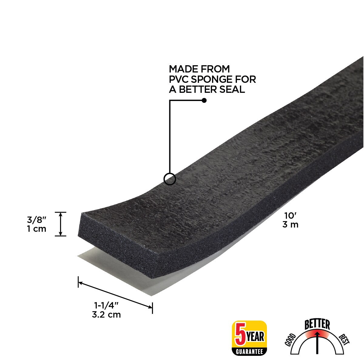 Made of closed-cell, PVC sponge tape. Seals gaps at the bottom of your window to protect against drafts, moisture, dust and insects. Minimal compression reduces vibration. Black color. Highly water re…
