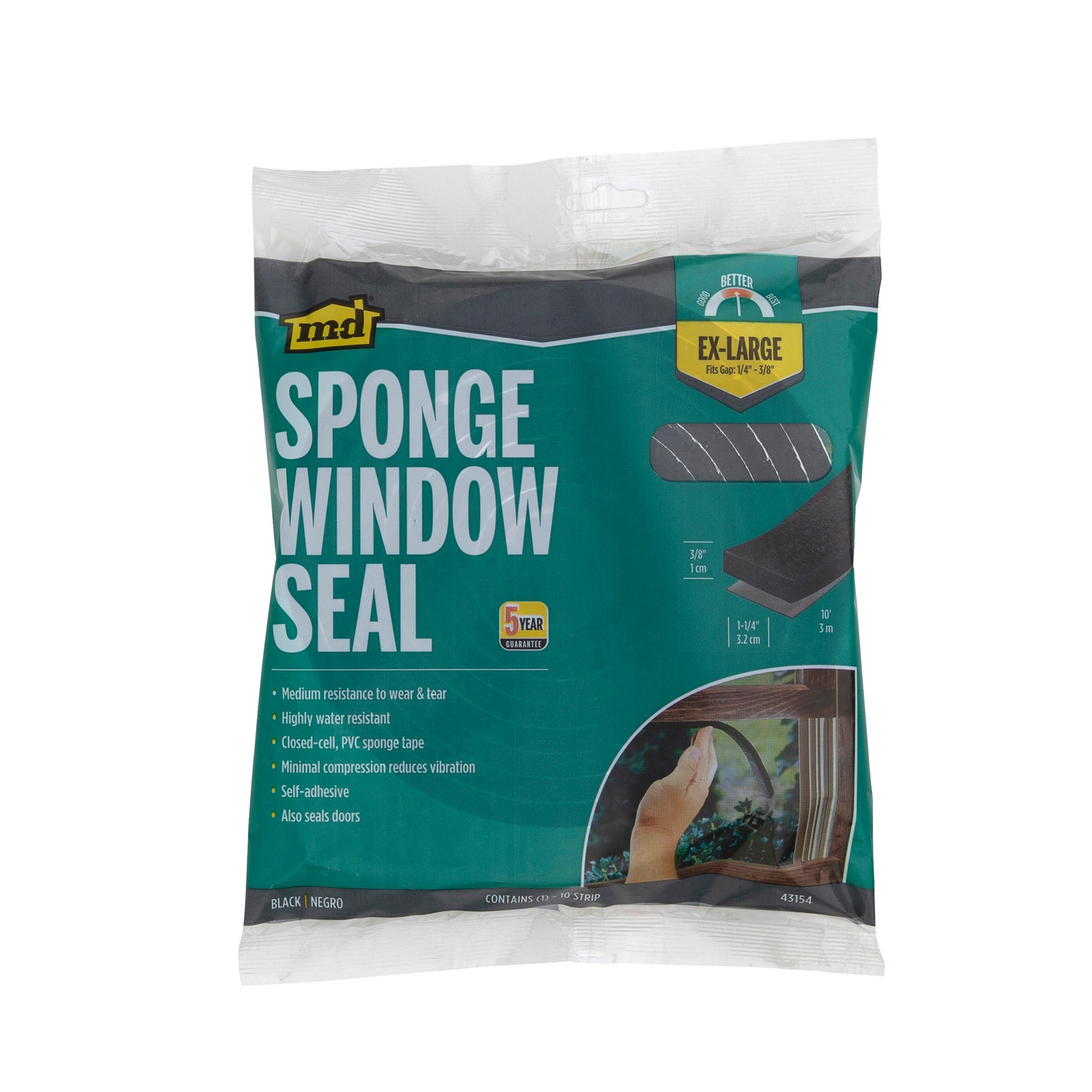 M-D 10-ft x 1-1/4-in x 3/8-in Black Window Seal PVC sponge Window Weatherstrip