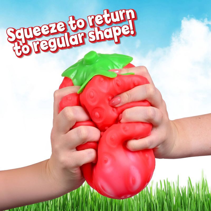 - STRESS RELIEF: Squish, stretch and squeeze your way to stress relief with a realistic fruit toy. This sweet strawberry will return to its shape while keeping your hands busy and mind at ease.