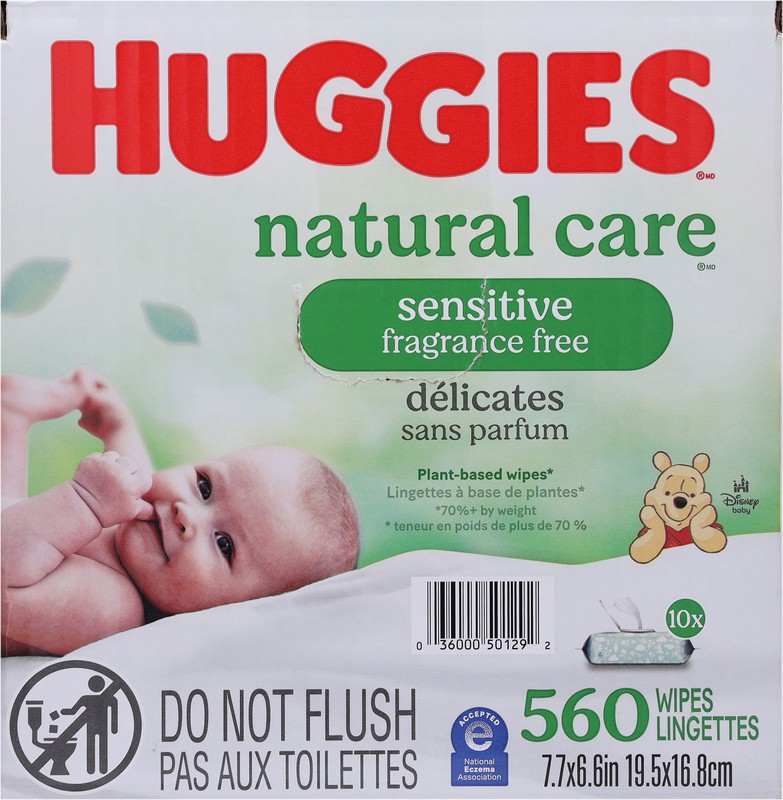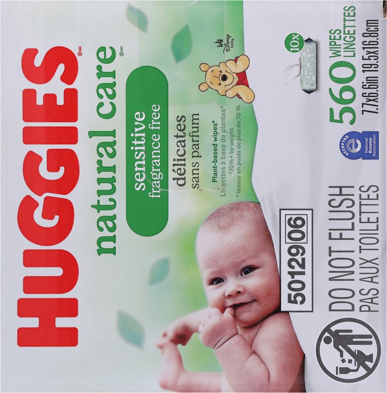 - 10 flip-top packs of 56 Huggies Natural Care Sensitive Baby Wipes