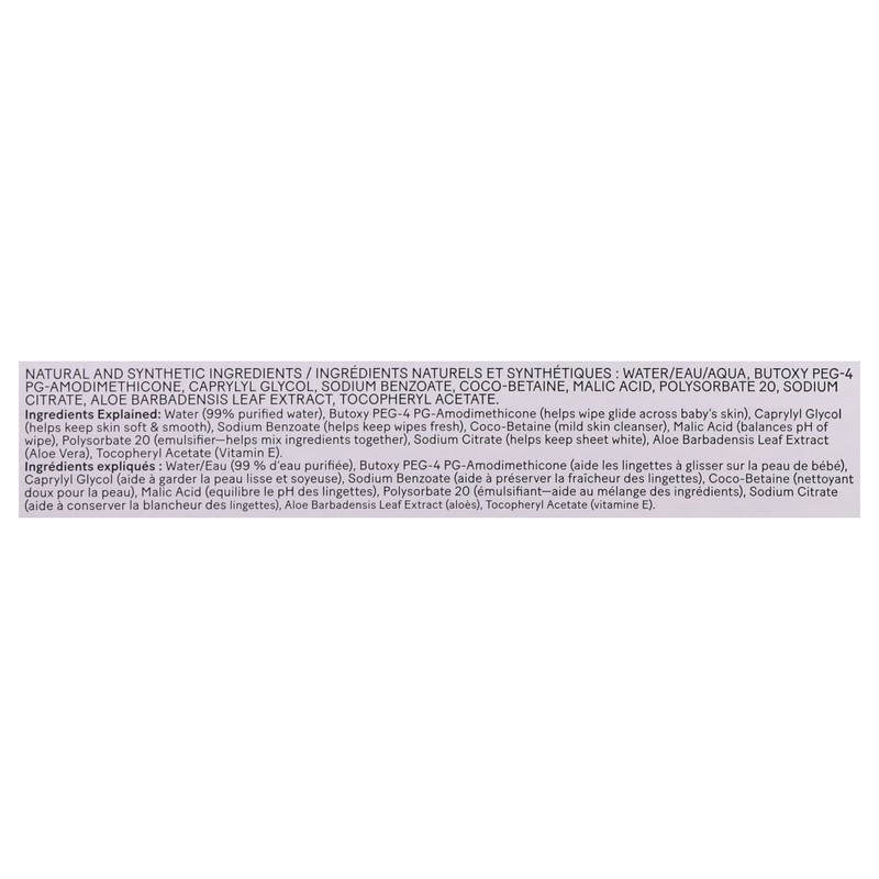 - Unscented diaper wipes are infused with aloe and vitamin E