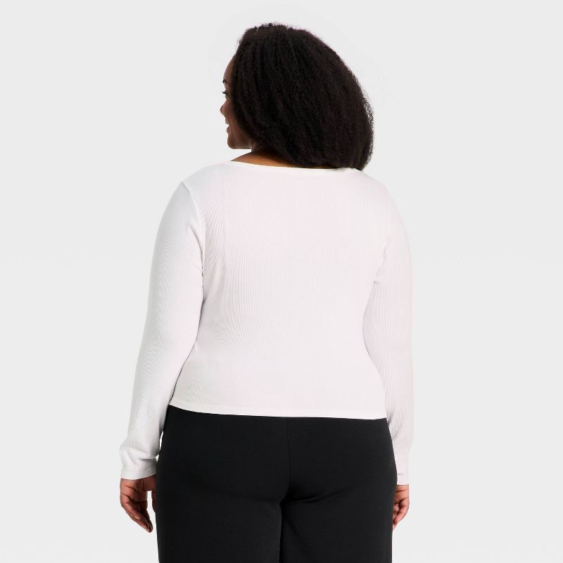 Women's Modern Ribbed Button-Up Knit Cardigan - A New Day™ White XXL