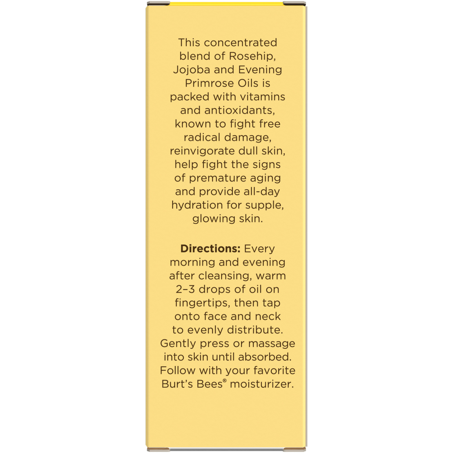 - RESTORE SKIN’S HYDRATION: One 0.51 fl. oz. bottle of Burt's Bees Facial Oil With Rosehip Seed Extract
