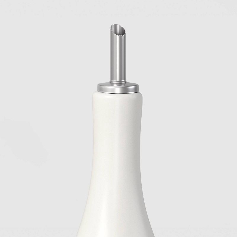 Upgrade your kitchen with this Aralia White Ceramic Oil Dispenser from Threshold™. Featuring a white curved body with a slender-neck profile, this stoneware dispenser has a chrome-finish pouring spout…