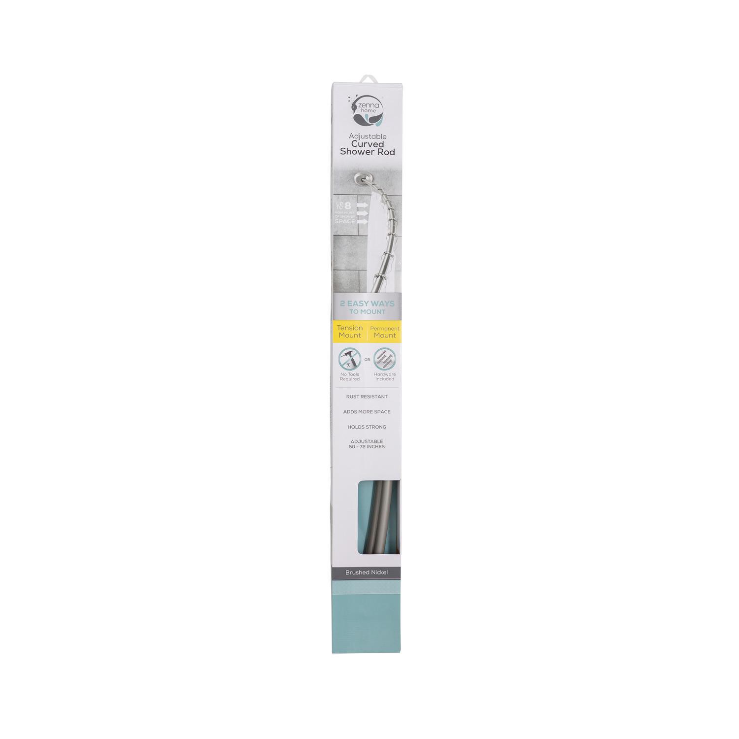 Zenna Home Tension or Permanent Mount Adjustable Curved Shower Rod, Brushed Nickel