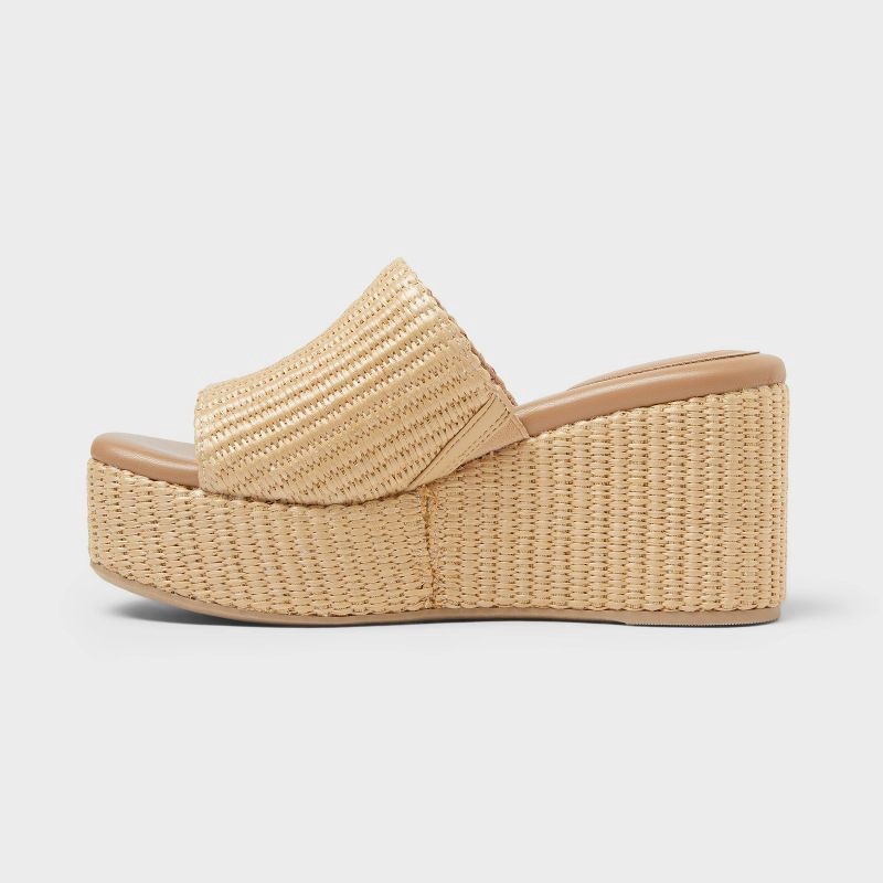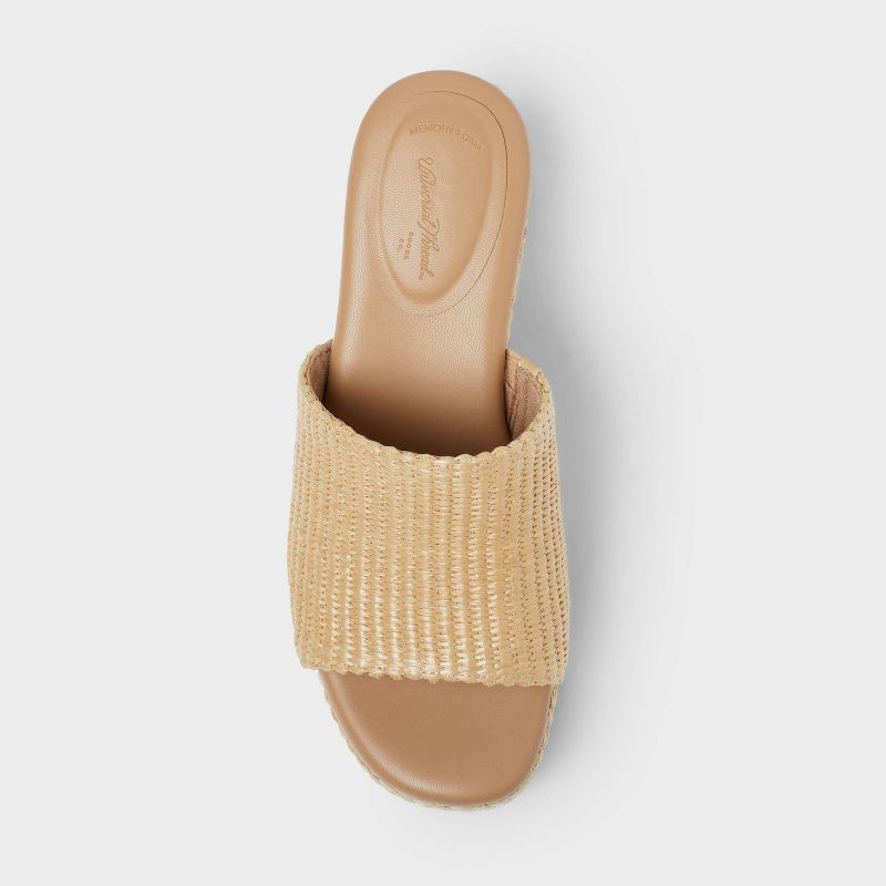 Elevate your look with these Clove Round Toe Platform Heels from Universal Thread™. These clove sandals feature a single wide band with raffia detailing for an elegant look. The slip-on design allows …