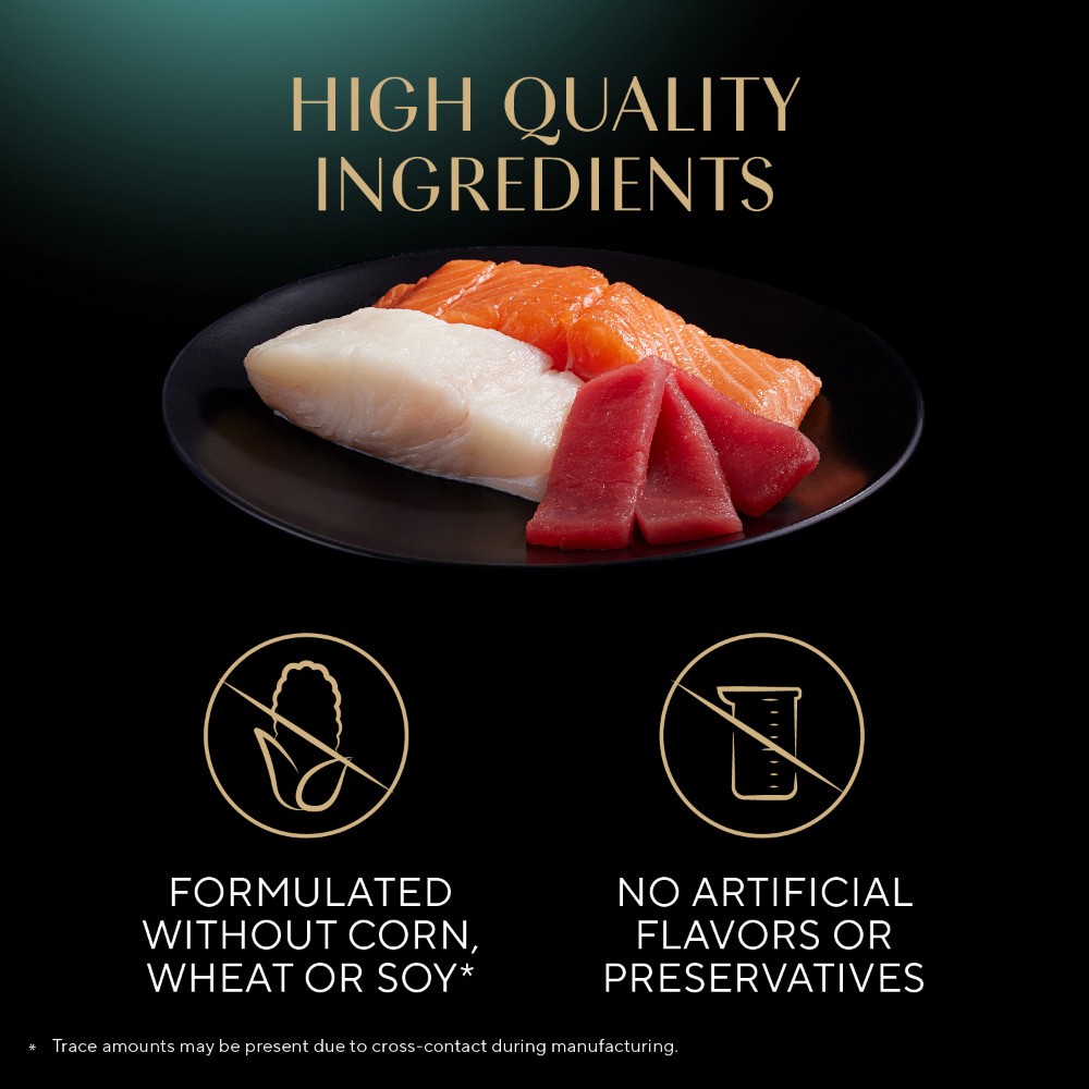 Delicate Salmon: Chicken, Water, Salmon, Poultry Liver, Chicken Broth, Guar Gum, Potassium Chloride, Sodium Tripolyphosphate, Fish Oil, Choline Chloride, Magnesium Sulfate, Tapioca Starch, DL-Methioniā¦