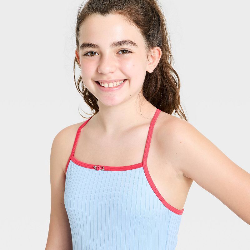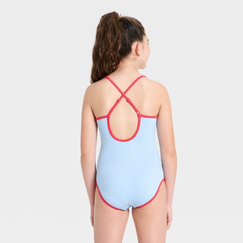 Girls' Rosette Ribbed One Piece Swimsuit - art class™ Blue/Red L