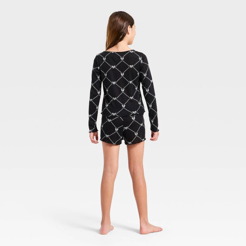 Make bedtime extra sweet with the Girls' 2pc Sanrio Long Sleeve Kuromi Pajama Set in Black. This adorable two-piece set includes a long-sleeve pajama t-shirt and matching pull-on pajama shorts, perfec…