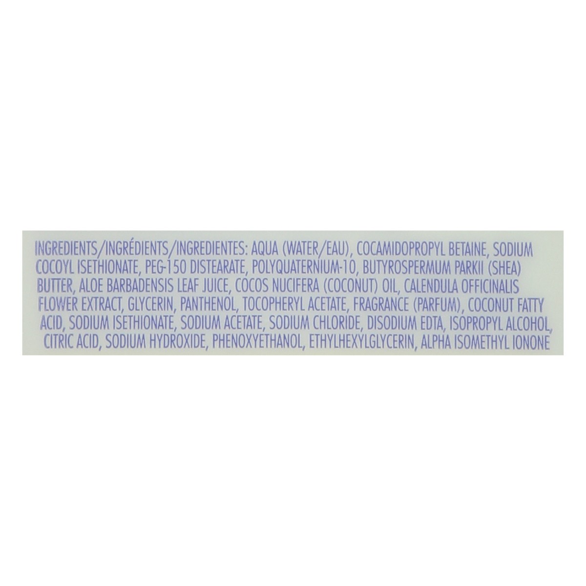 Aqua (Water/Eau), Cocamidopropyl Betaine, Sodium Cocoyl Isethionate, PEG-150 Distearate, Polyquaternium-10, Butyrospermum Parkii (Shea) Butter, Aloe Barbadensis Leaf Juice, Cocos Nucifera (Coconut) Oi…