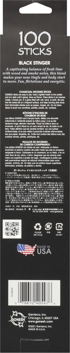 Gonesh Incense Extra Rich Black Stinger Incense Sticks 100 ea