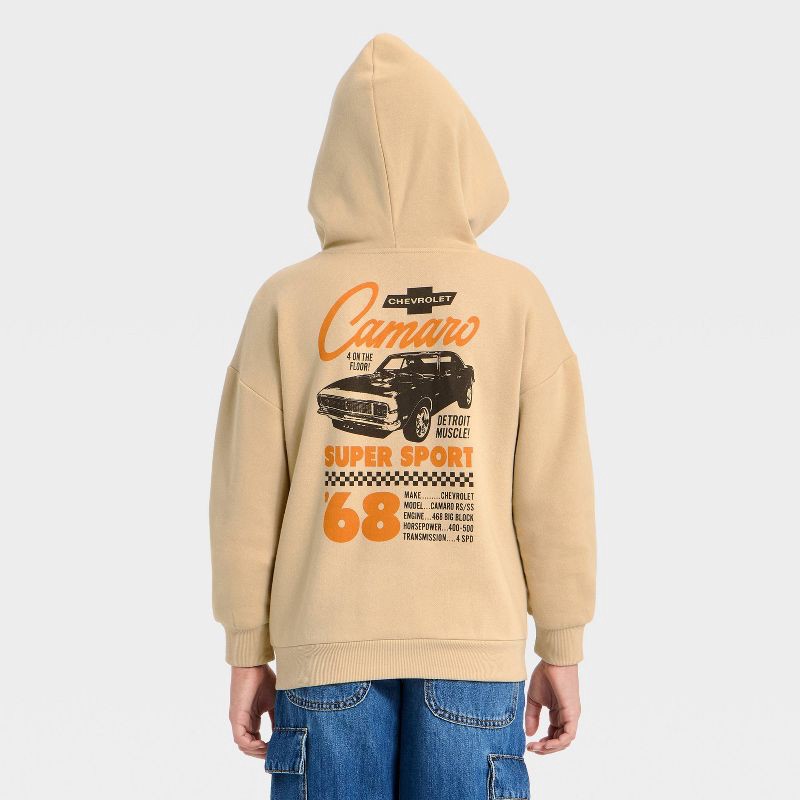 Boys' Chevrolet Camaro Front and Back Graphic Pullover Hoodie Sweatshirt - Beige M