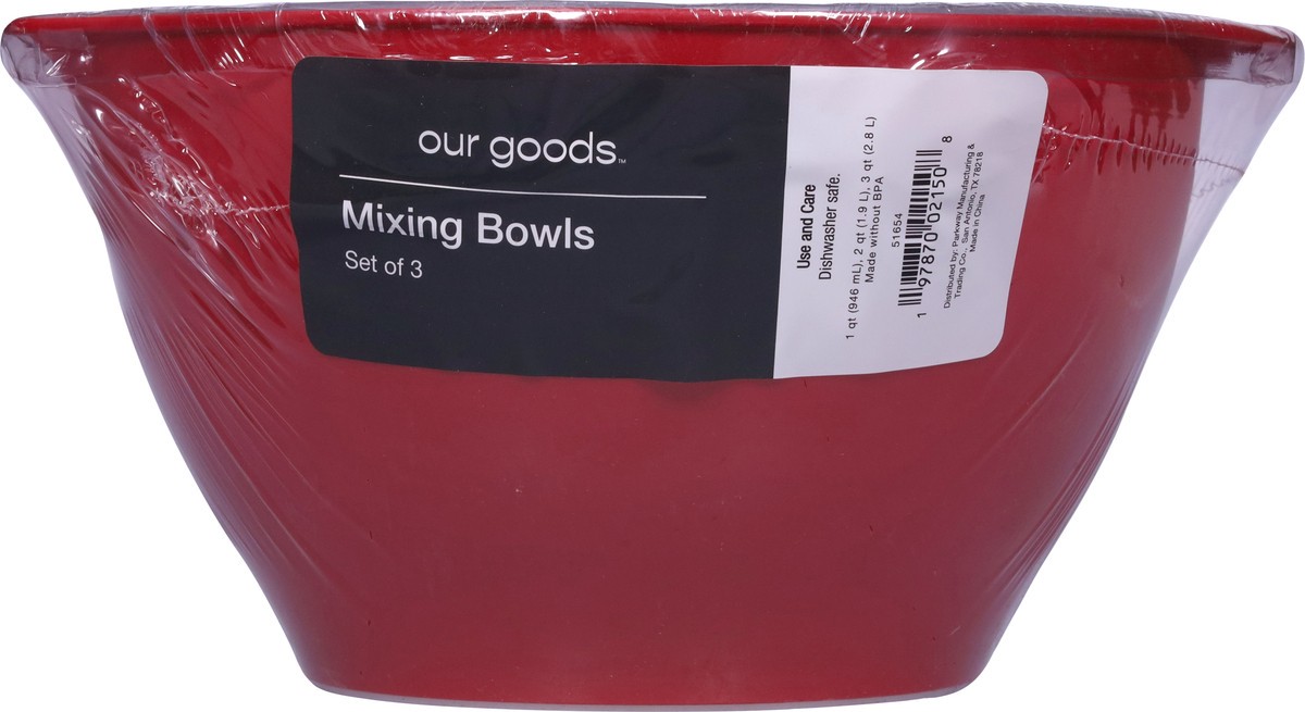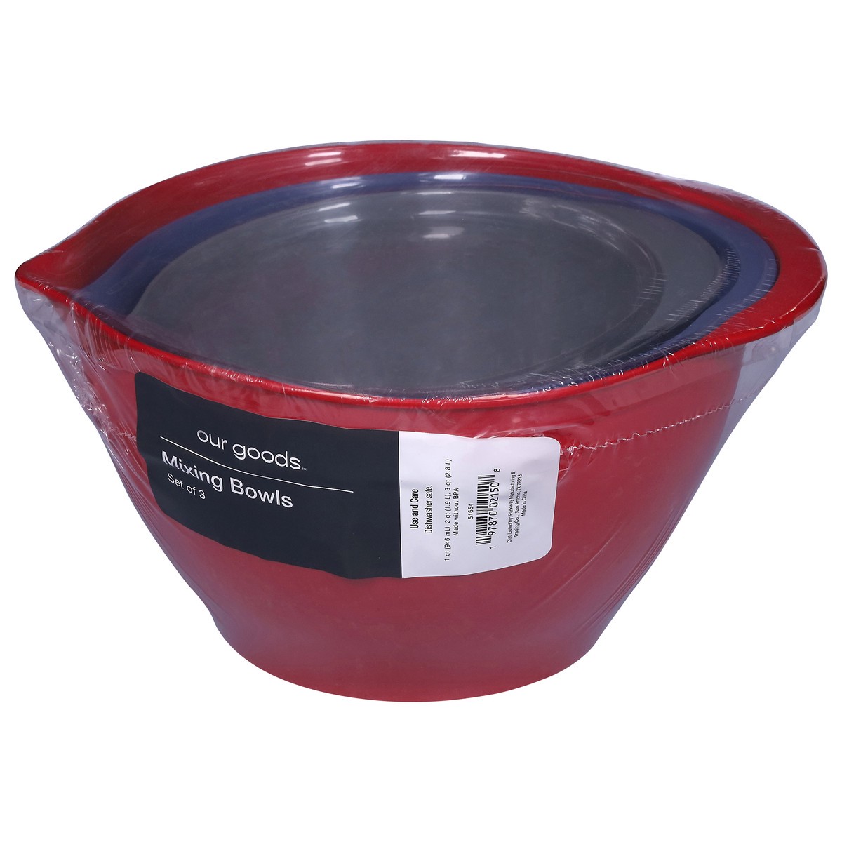 Whip up culinary delights with this our goods 3-piece plastic mixing bowl set. These lightweight bowls come in various sizes, perfect for mixing ingredients for everything from cakes to salads. The ne…