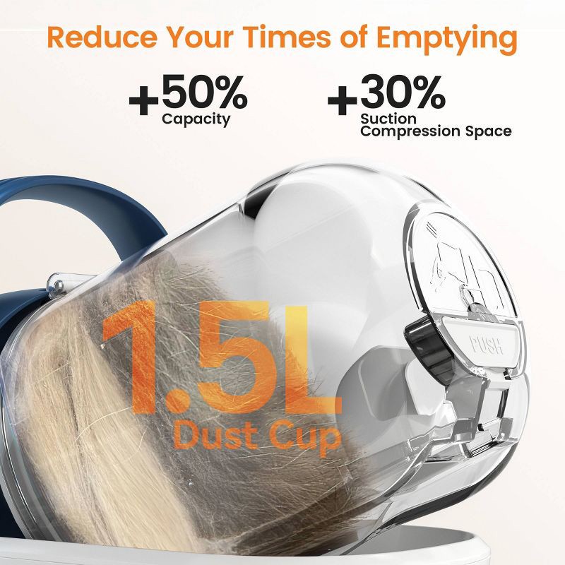 - Large-Capacity Dustbin. — Less Emptying, More Grooming: The detachable 1.5L dust box holds 25% more than standard models, allowing you to groom longer and with fewer interruptions. The easy-empty design helps keep hands clean and cleanup hassle-free.