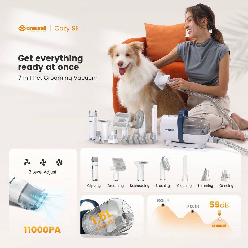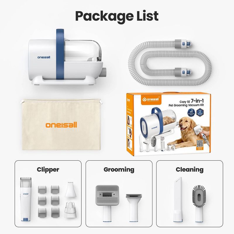 OneIsAll Cozy SE 7-in-1 Pet Grooming Vacuum Kit