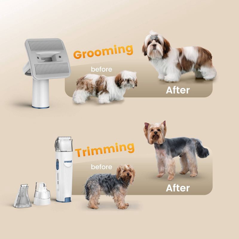 Mess Free Grooming in One Step: Equipped with a built-in vacuum function, Oneisall pet grooming clippers capture up to 99% of loose hair while you trim your pet. Hair is collected directly into the du…