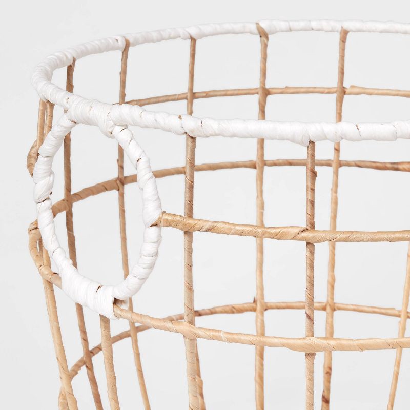 Help clean up clutter from your kiddo's room with this Natural Woven Basket with White Rim from Pillowfort™. This kids' storage basket features a wire-like construction woven from water hyacinth for a…