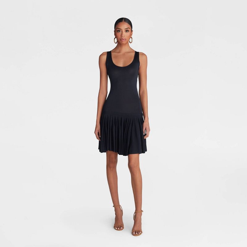 Made to move, this fit and flare slip dress is designed with a weighted sweater-knit jersey fabric and a dropped waist with a pleated skirt that comes alive when it's in motion. This piece is giving u…