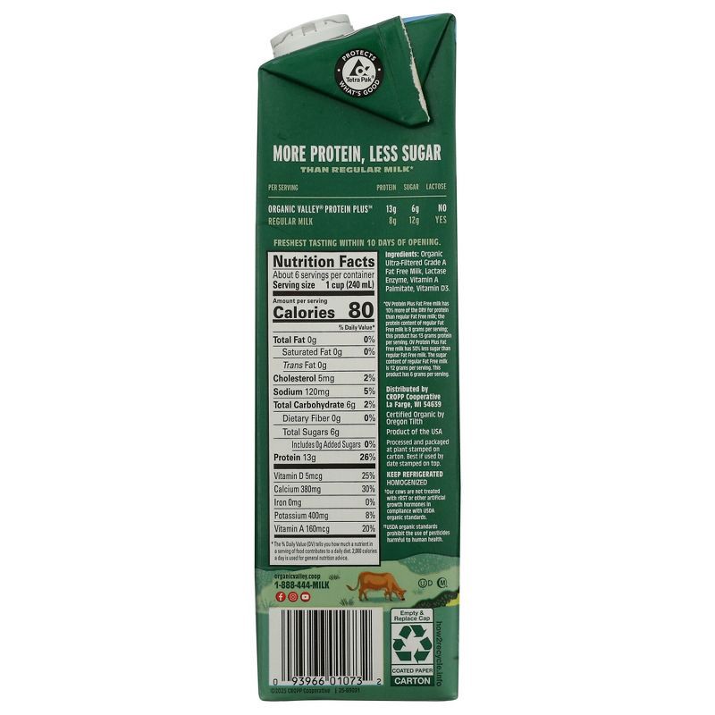 Organic Valley® Protein Plus™ Organic Ultra-Filtered Fat Free Milk - 48 fl oz