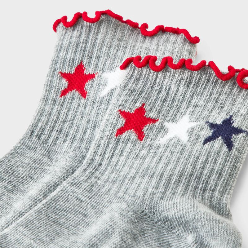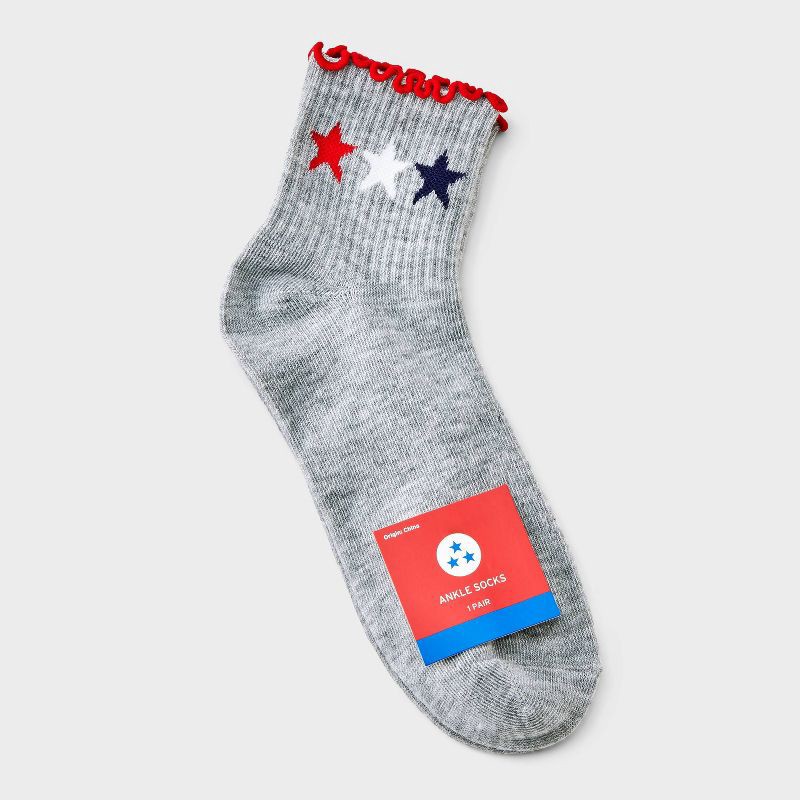 Women's Stars Ruffle Ankle Socks - Heather Gray 4-10