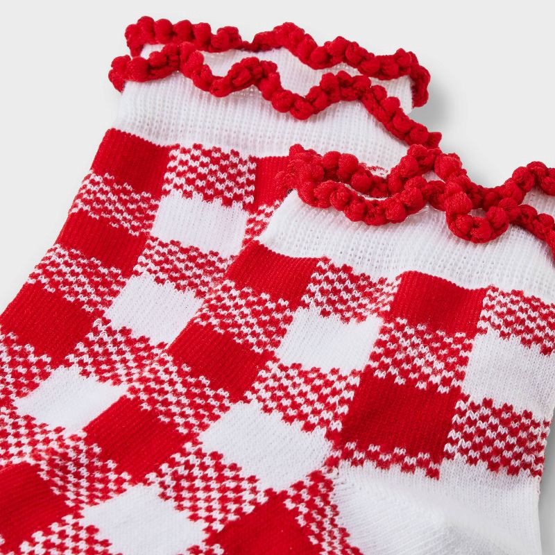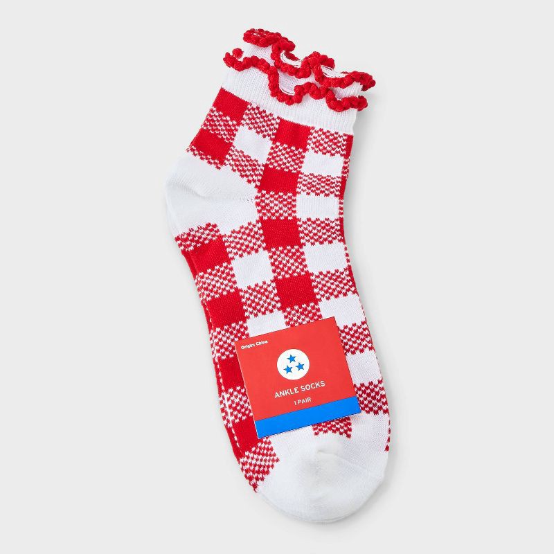 Women's Gingham Ruffle Ankle Socks - White/Red 4-10