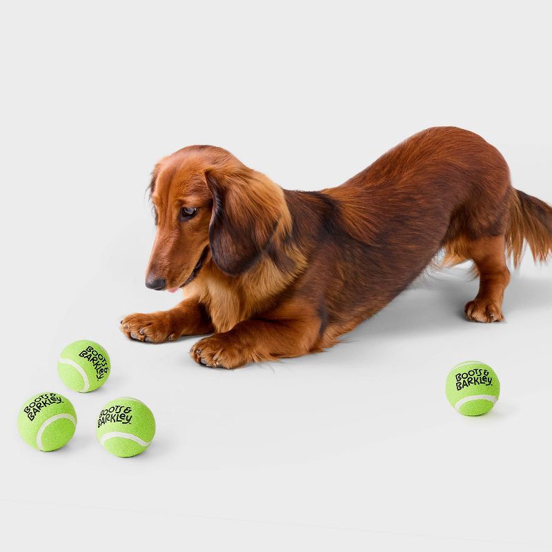 These Tennis Ball with Squeaker Dog Toys from Boots & Barkley™ unleash joyful sound with every bounce. This four-piece set features green tennis balls with squeakers for added excitement during play. …