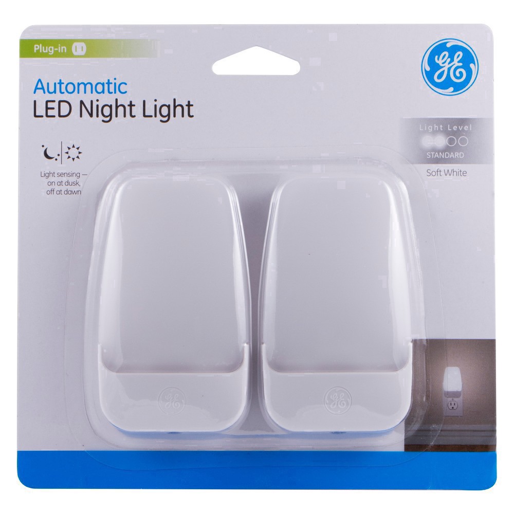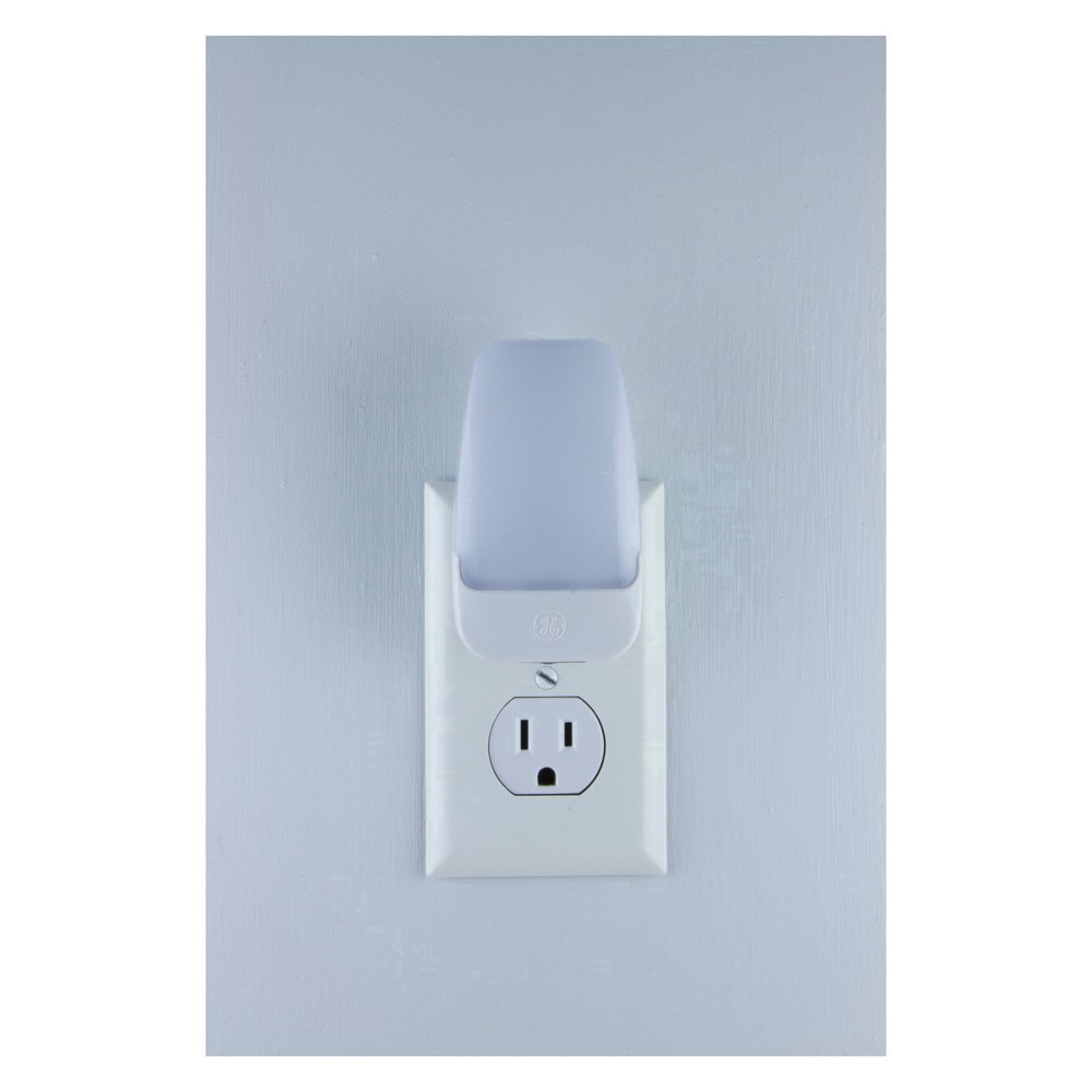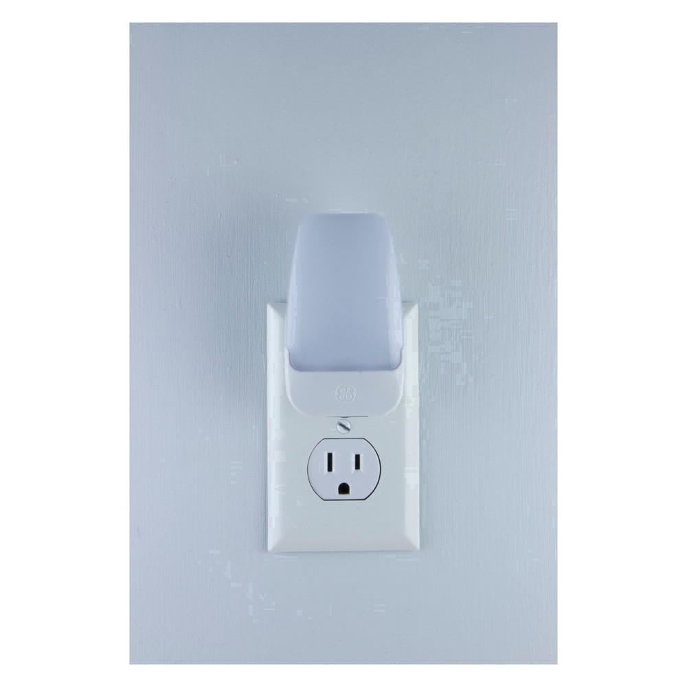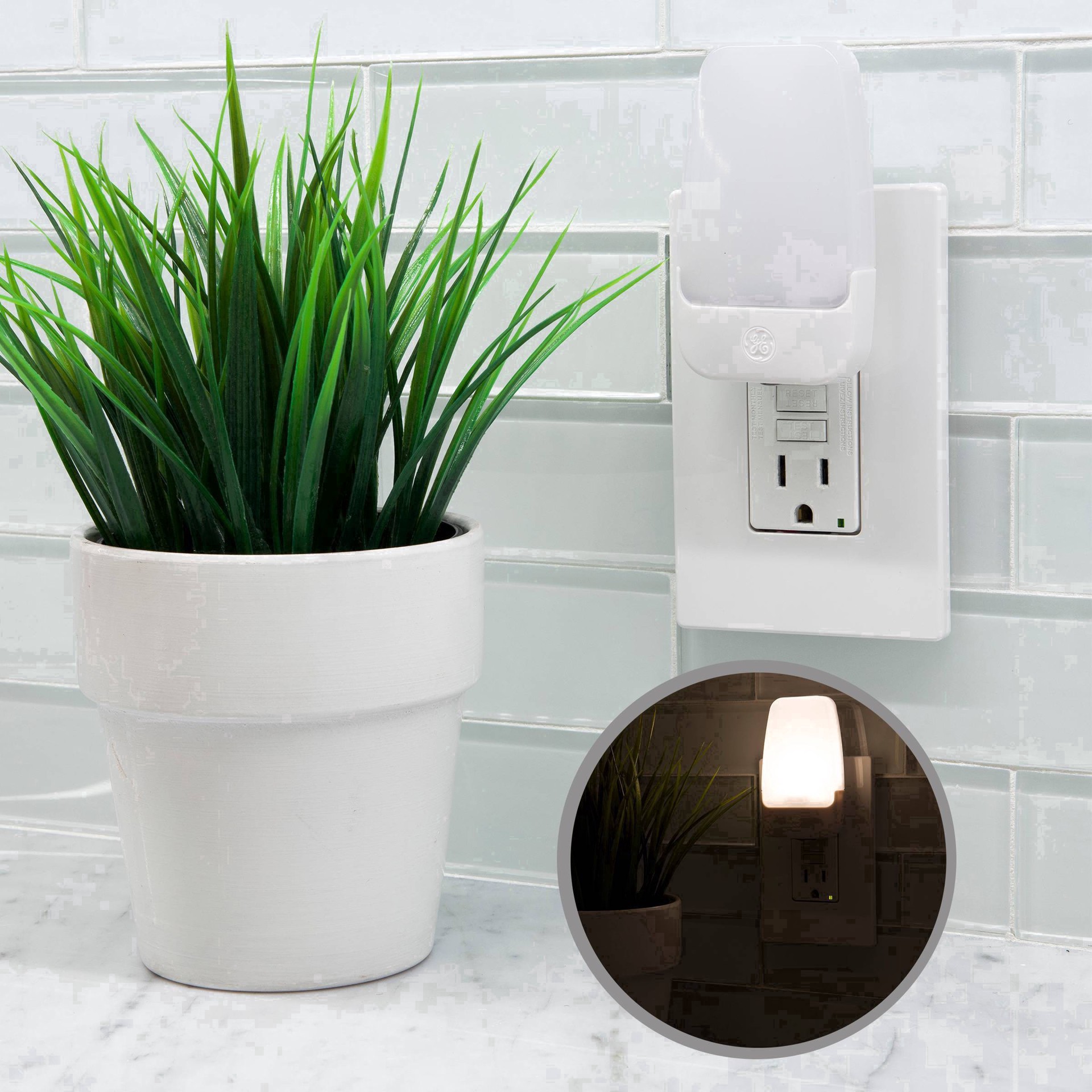 Illuminate your home throughout the night with the GE Light-Sensing LED Night Light. Housing a soft, energy-efficient LED, this plug-in night light will help guide you safely through your nighttime ro…