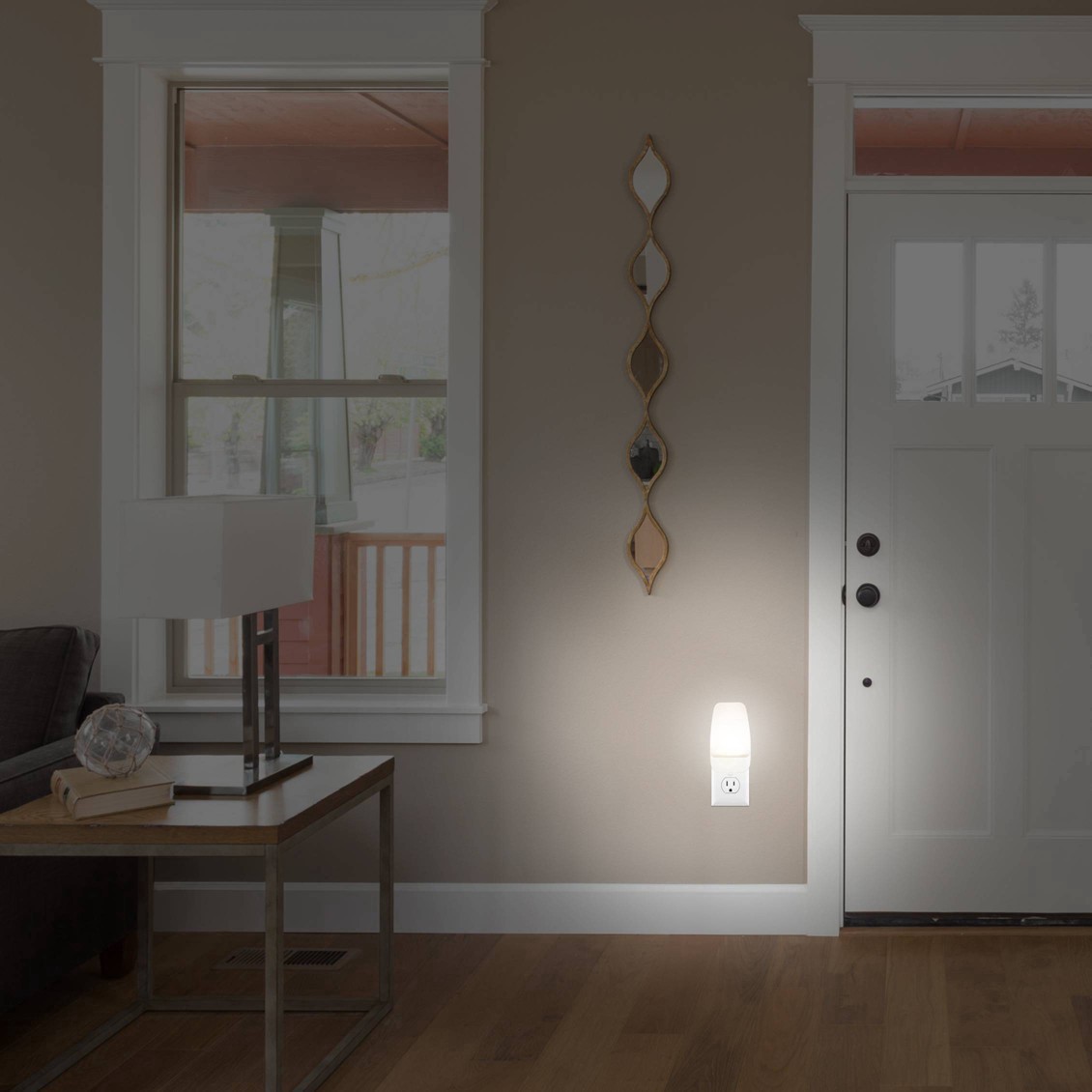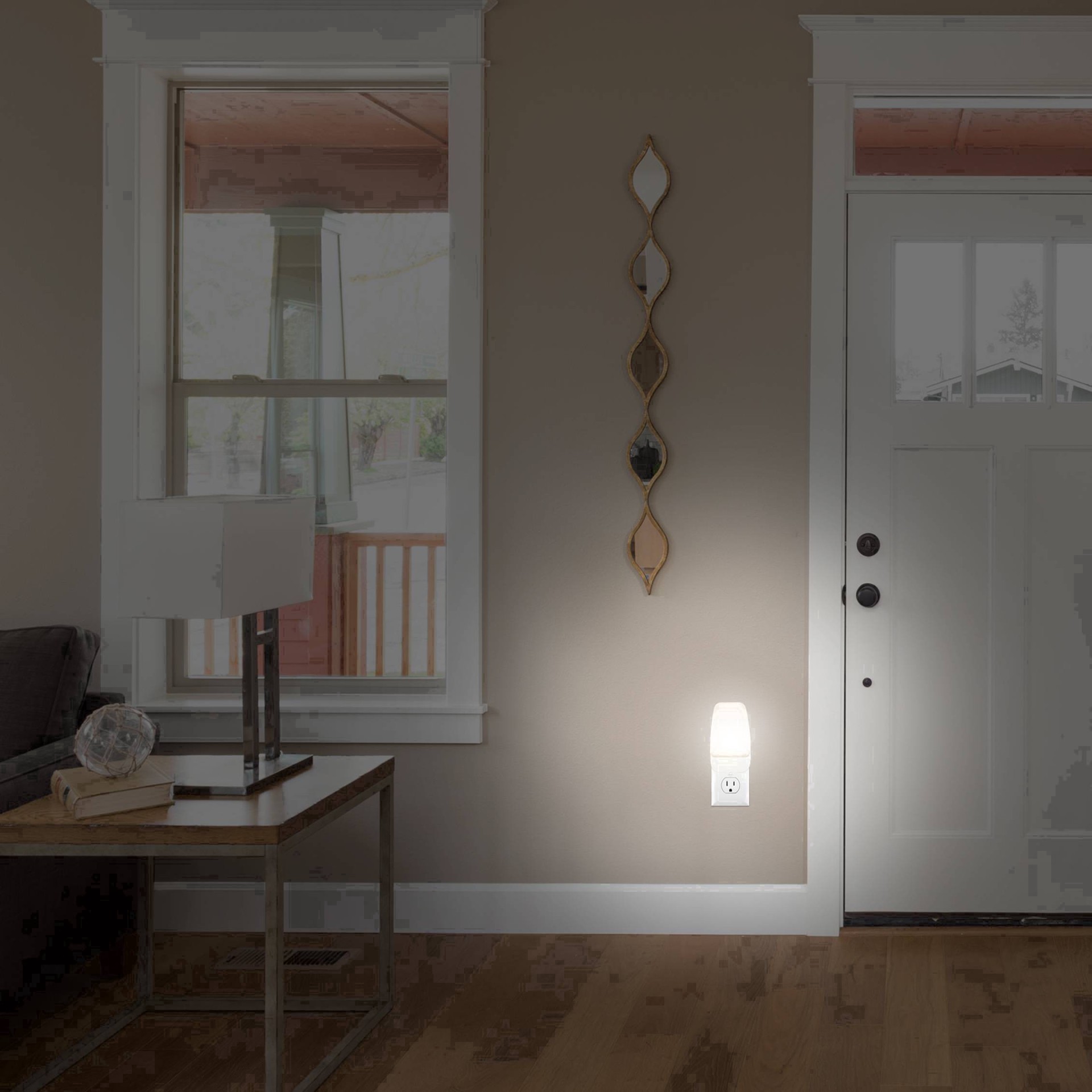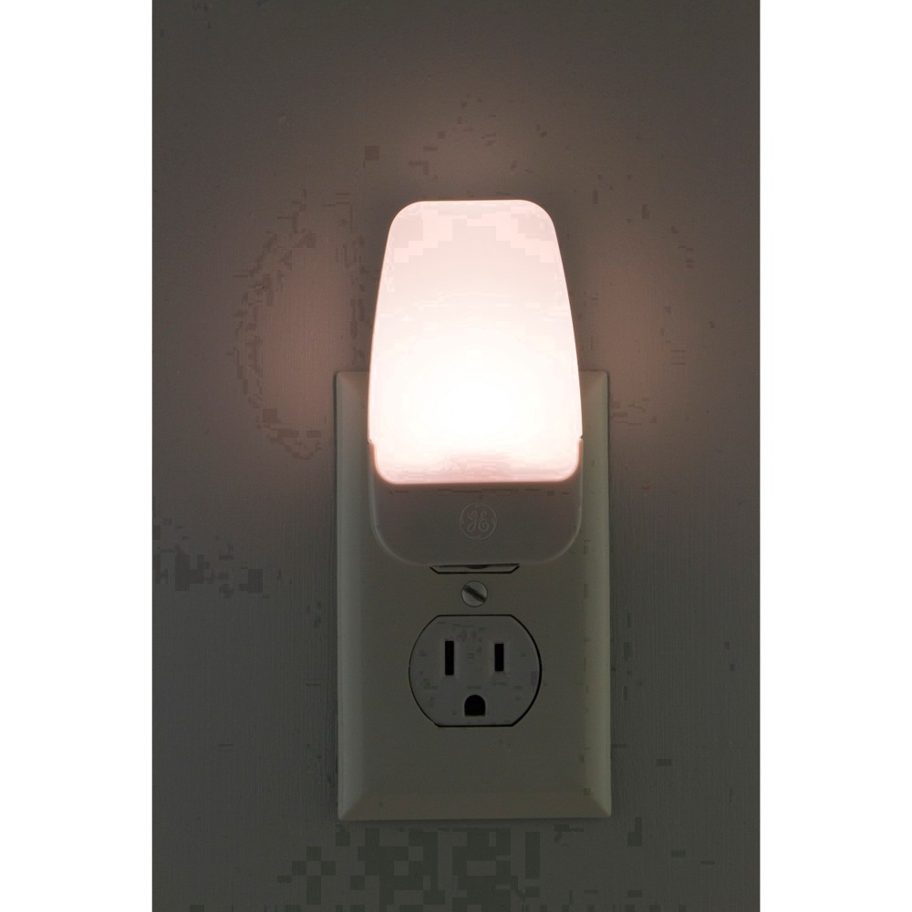 Illuminate your home throughout the night with the GE Light-Sensing LED Night Light. Housing a soft, energy-efficient LED, this plug-in night light will help guide you safely through your nighttime ro…