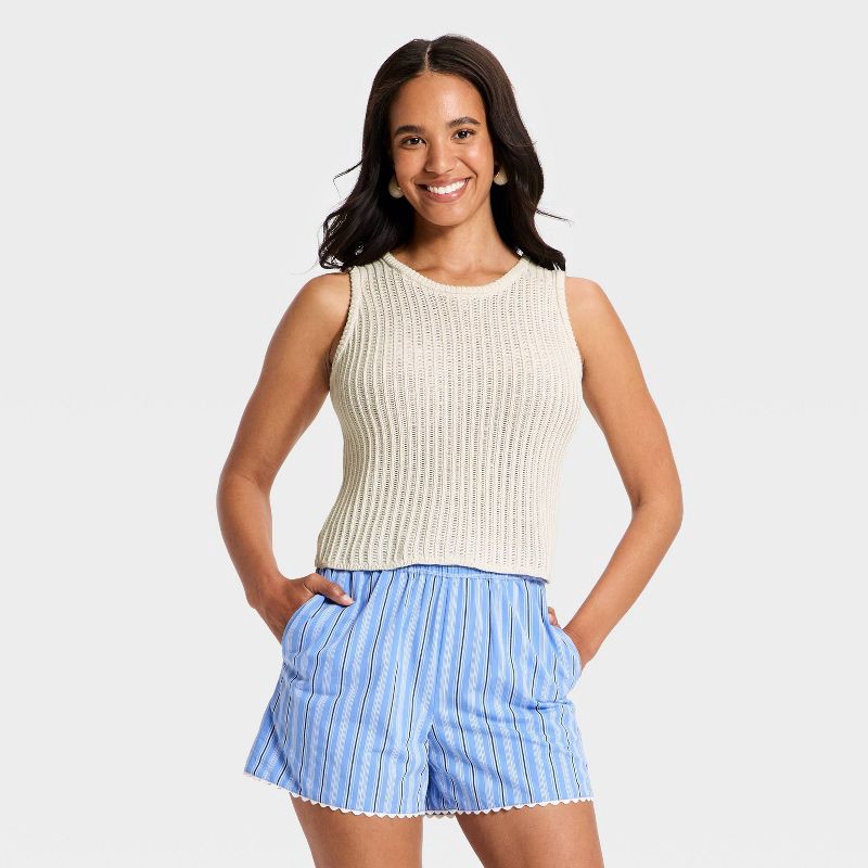 Women's Crewneck Drop Needle Pullover Sweater Tank - A New Day™ Cream XS