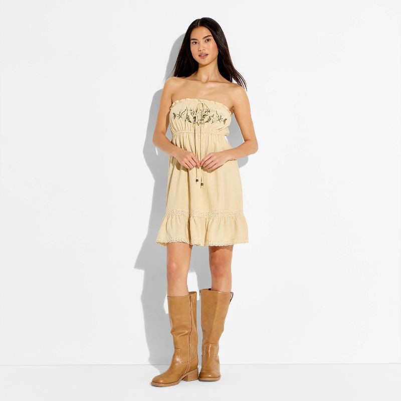 Women's Tube Mini Embroidered A-Line Dress - Wild Fable™ Tan L