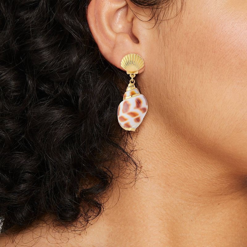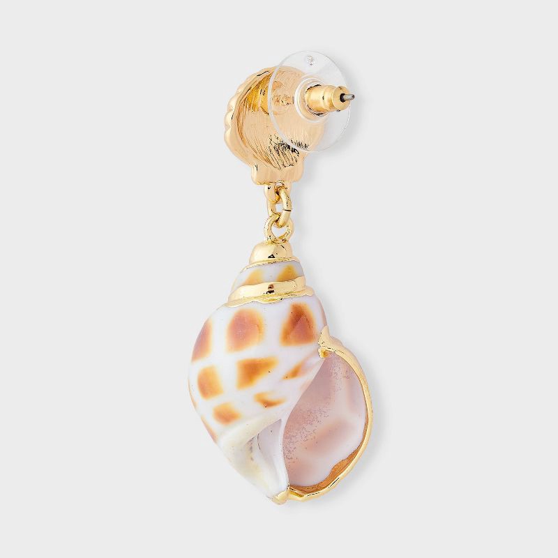 Elevate your pool or beach look with these Shell Charm Drop Earrings from A New Day™. These drop earrings feature a gold-tone earpiece with a shell design accentuated by a seashell charm in brown and …