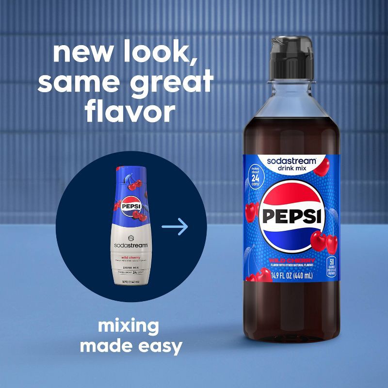 - Includes: (1) 14.9 FL OZ SodaStream® Pepsi® Wild Cherry Drink Mix
