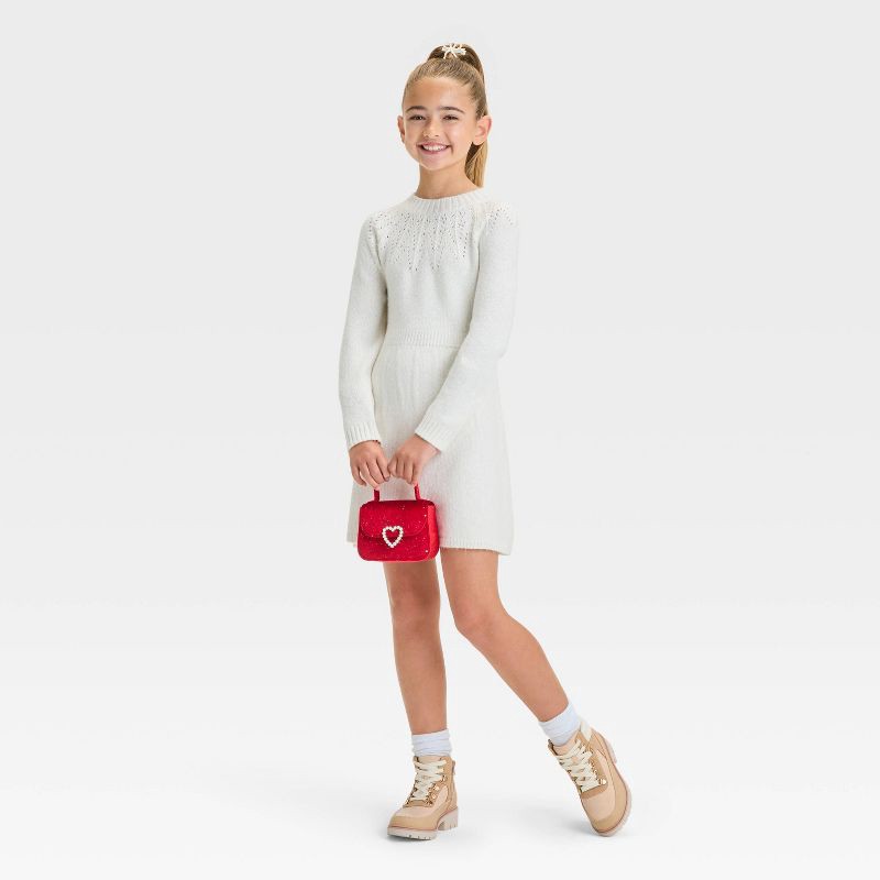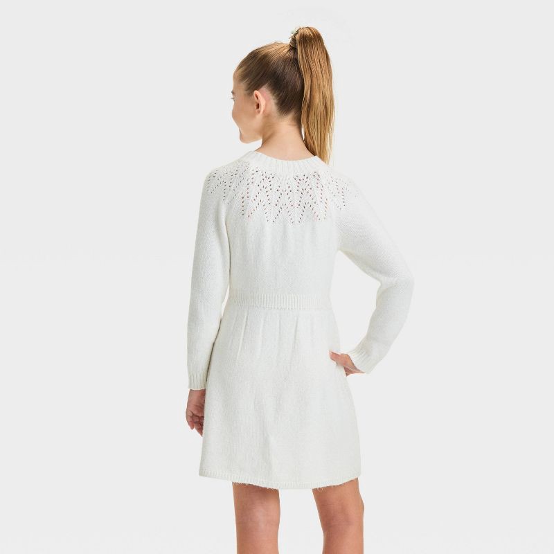 Add a classic touch to your kids' wardrobe with this Pointelle Long-Sleeve Sweater Dress from Cat & Jack™. Made of pointelle fabric, this knee-length dress features a crew neckline for an elegant look…