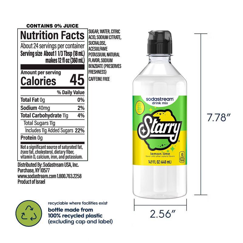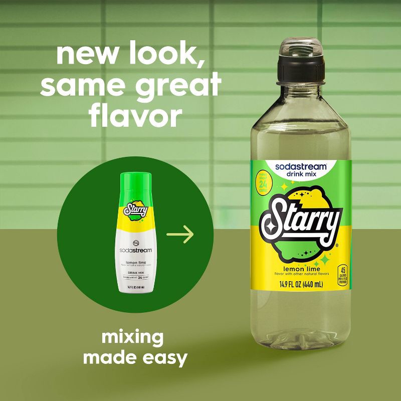 - Your favorite Starry Lemon Lime Soda, Your Way. Turn freshly carbonated Sodastream water into Starry Lemon Lime Soda in seconds with Starry drink mix. Always fizz water before adding any flavor.