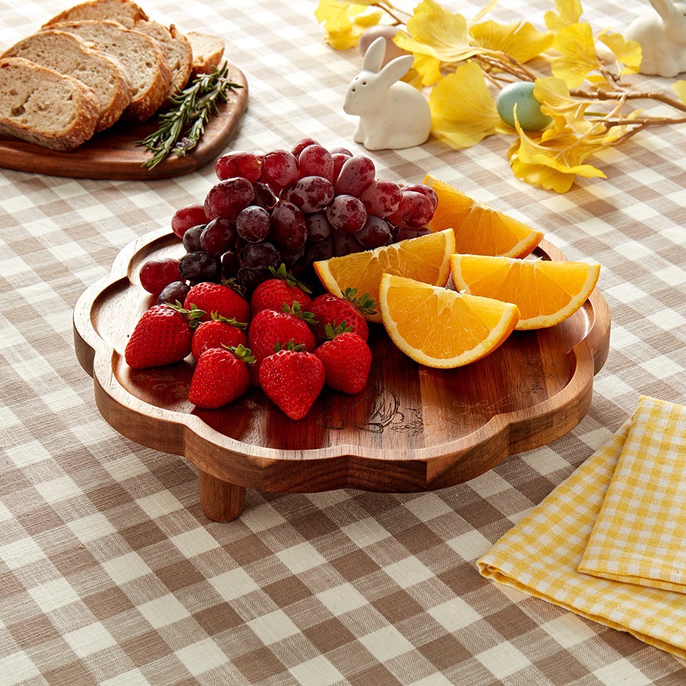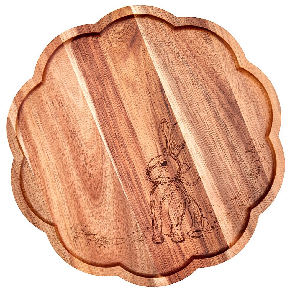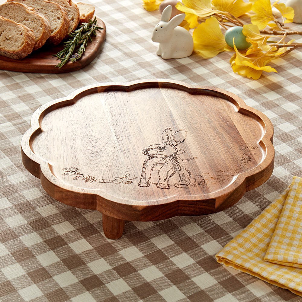 Elevate your party snack table with this scalloped footed wood board from SDS for HD Designs. Featuring a beautiful laser etched design, this wood board is perfect for serving desserts and other speci…