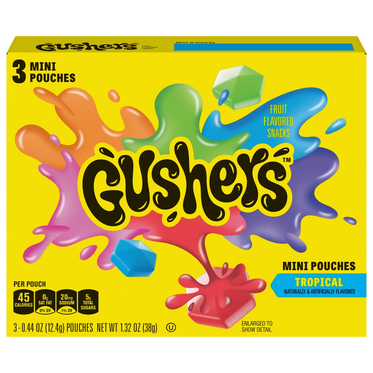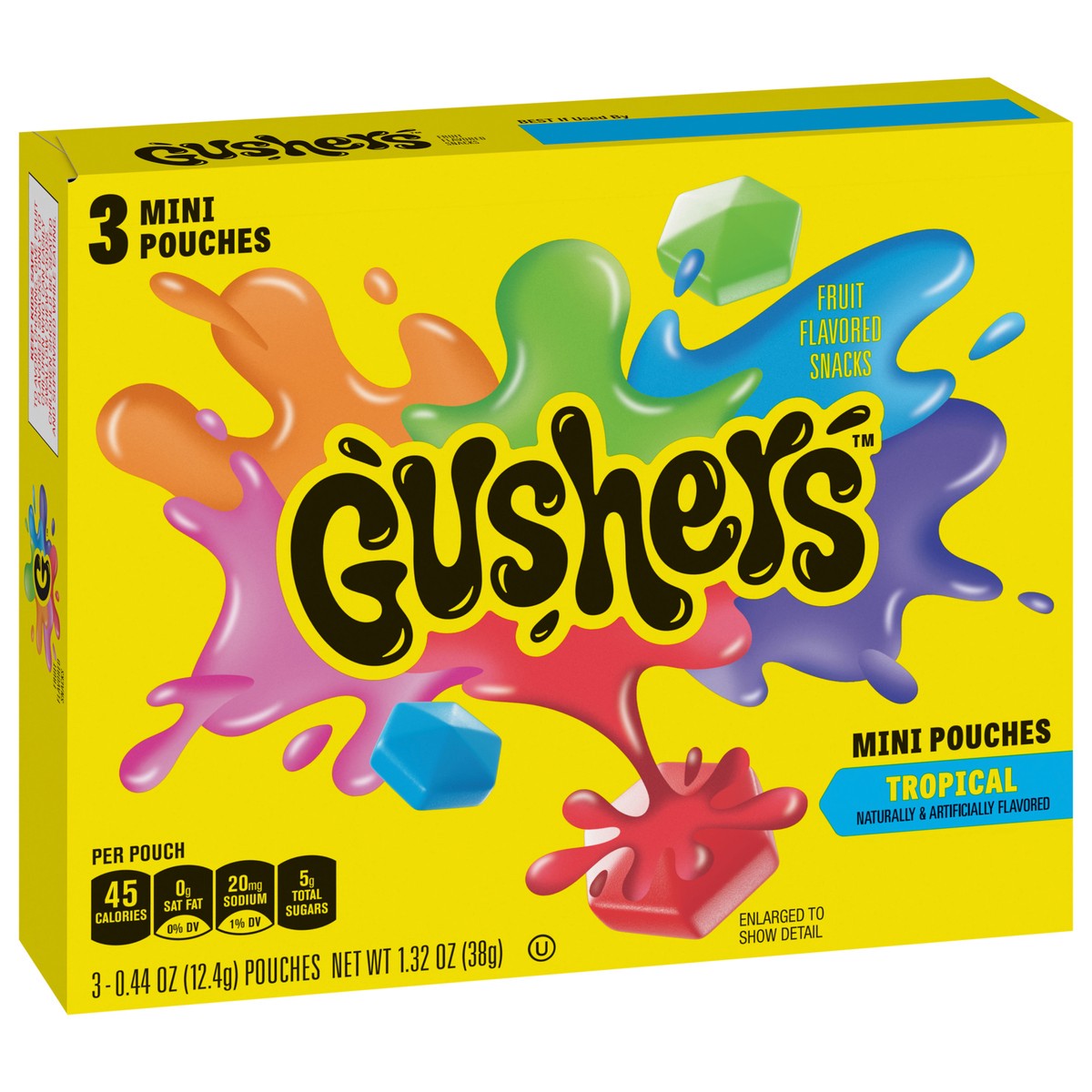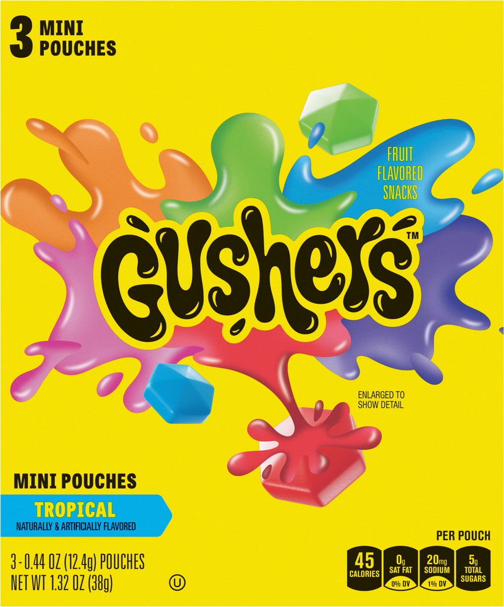 Fruit Gushers Tropical Fruit Flavored Snacks, Mini Pouches, 3 ct, 1.32 oz