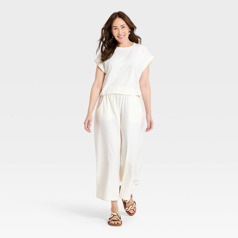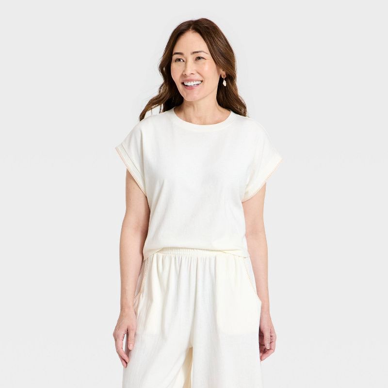 Women's Short Sleeve Jersey Knit T-Shirt - Universal Thread™ Cream XS