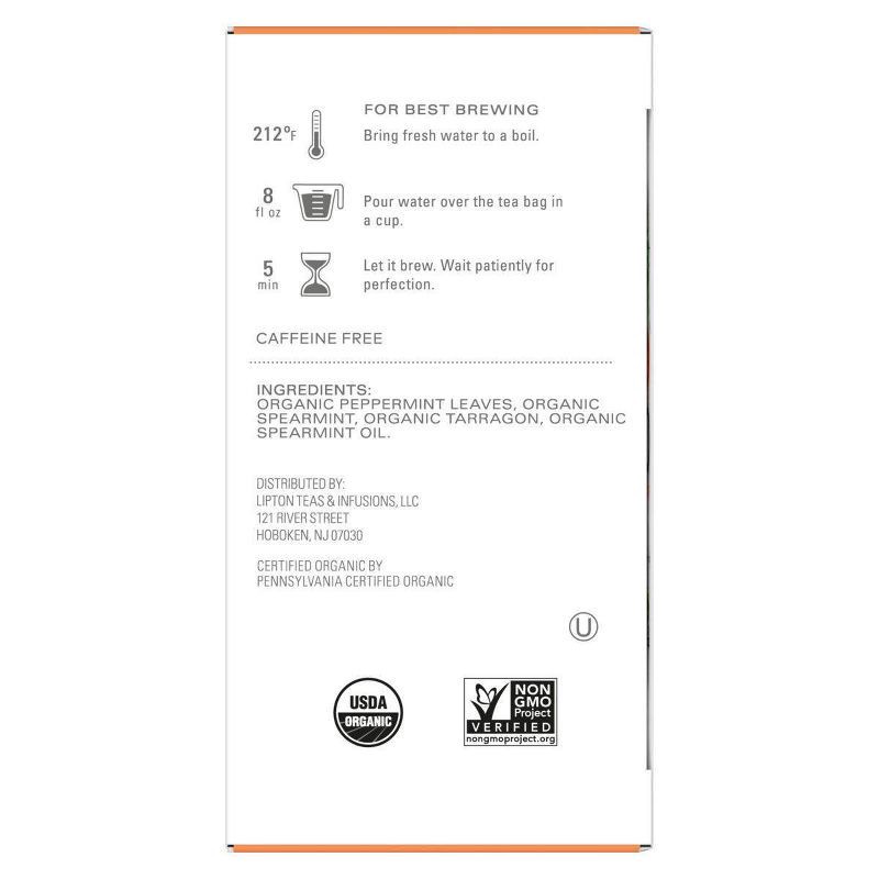 - REFRESH AND REVITALIZE: organic peppermint, spearmint, and tarragon come together for a crisp, cooling organic herbal tea infusion known to support a healthy digestion routine.