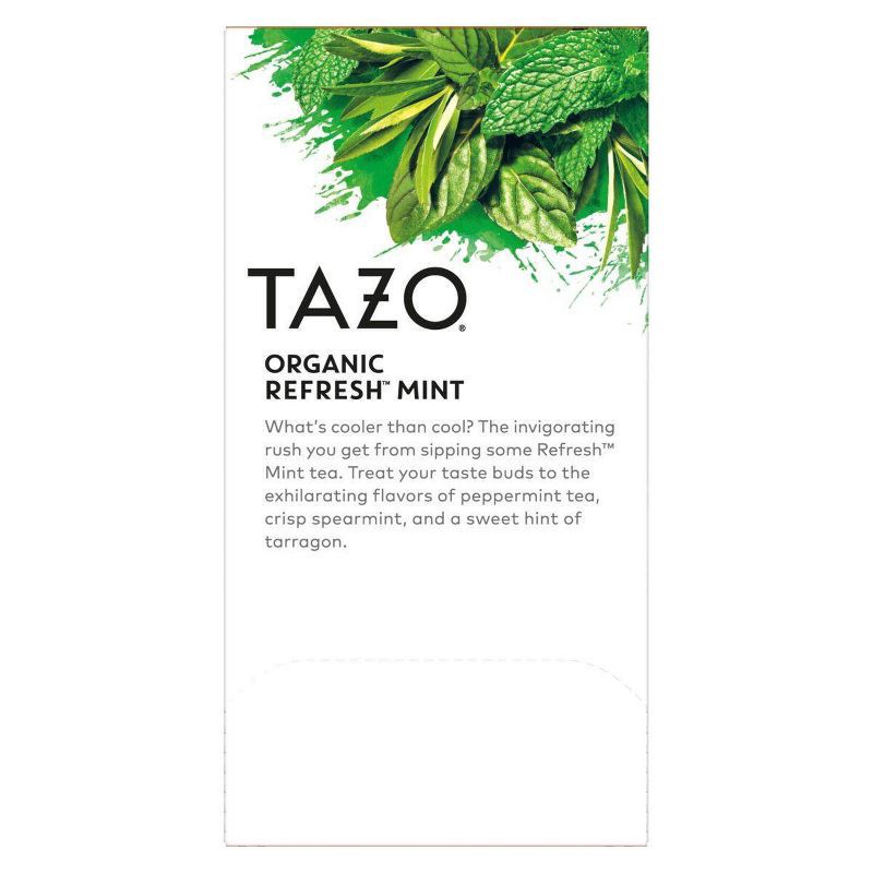 What's cooler than being cool? TAZO® Organic REFRESH™ Mint Herbal Tea. This invigorating blend brings together peppermint, spearmint, and a subtle hint of sweet tarragon for a bright, crisp flavor tha…