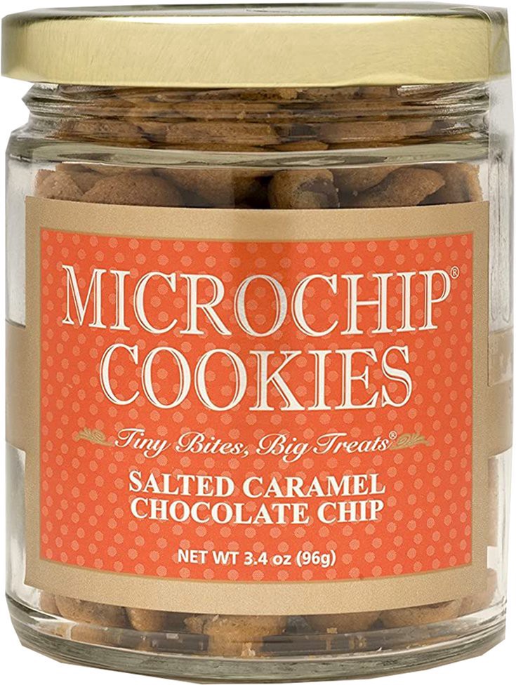 Salted caramel and mini chocolate chips baked in a buttery crisp Microchip cookie and topped with a punch of sea salt. An irresistible, salty and sweet sensation.